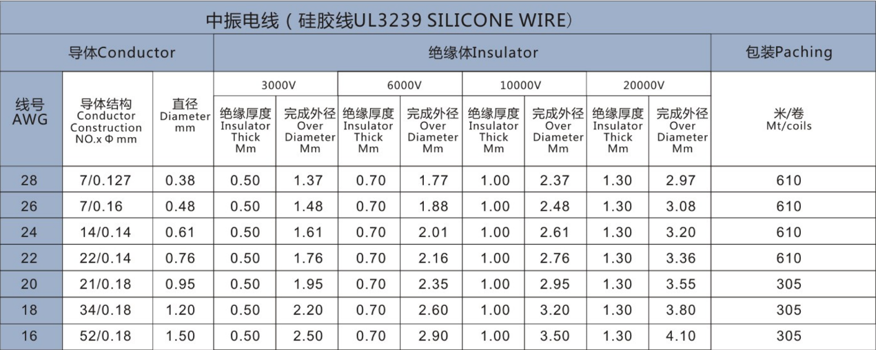 2. ʻO ka palena o ka UL3239 Silicone Wire